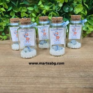 Бебешката погача е първият голям празник и официалното представяне на вашето мъниче пред света! За този специален ден, ателие Мартеа ви предлага всичко необходимо, изработено с много любов и нежност. При нас ще откриете красиви месали, оригинални карти за наричане от орисниците, празнични банери и най-милите подаръчета за погача, с които да зарадвате вашите гости. Разгледайте нашите предложения и запазете красив спомен от този вълшебен момент!