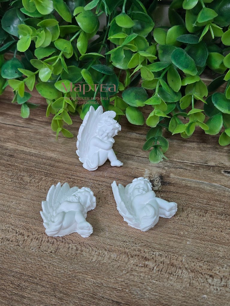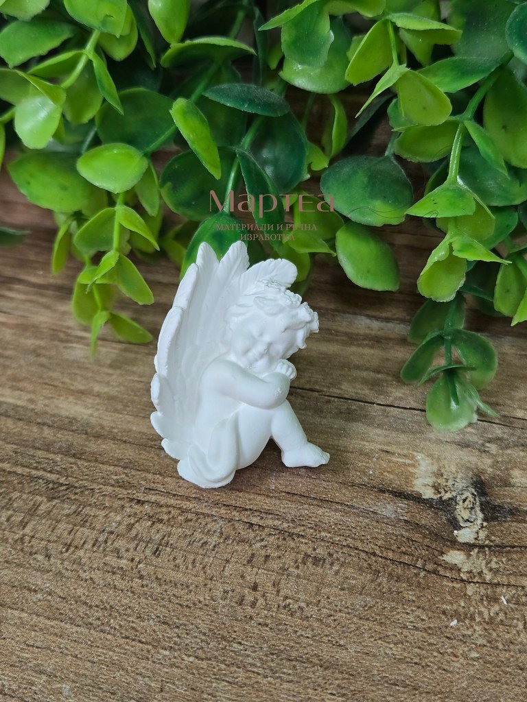 Отливка от висококачествена гипсо-керамика във формата на ангелче – седнало. Подходяща за изработка на различни декорации. Размер (Ш – 3,5см / В – 4,5см)