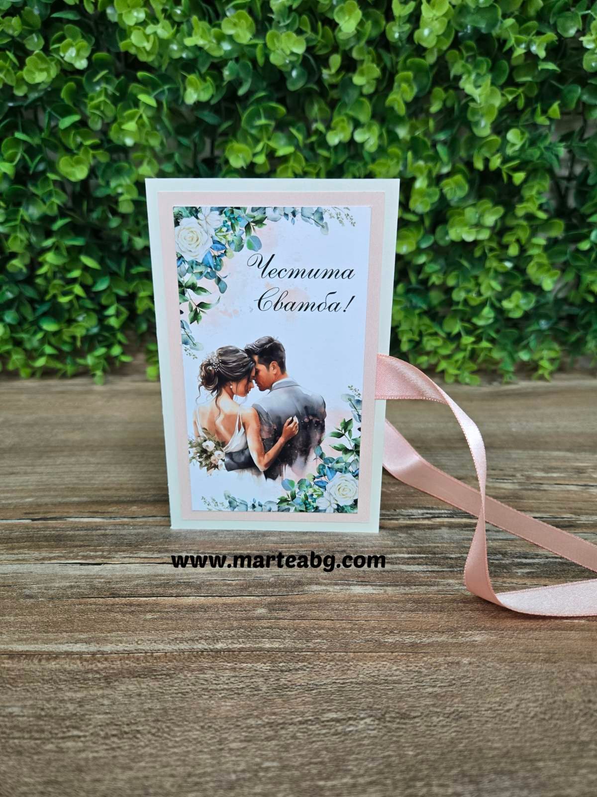 Текстът върху картичката може да бъде изработен по желание на клиента.