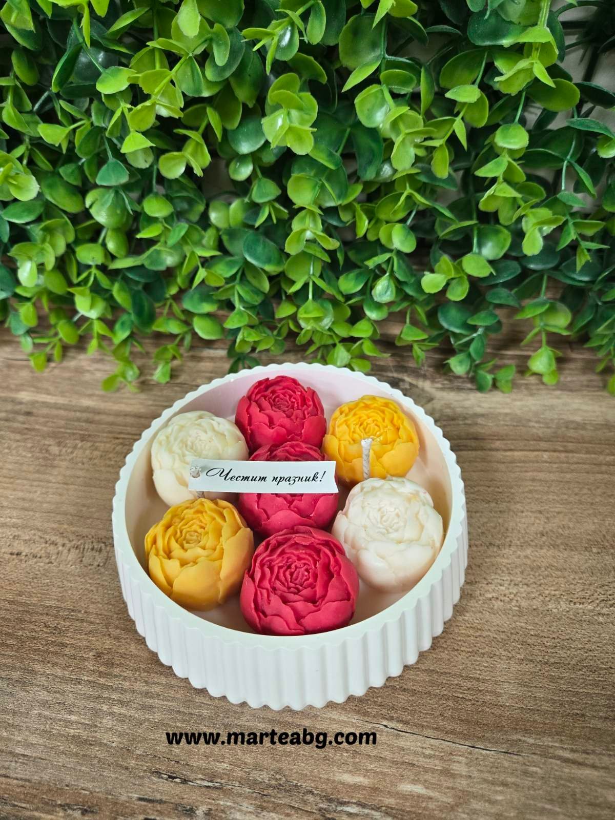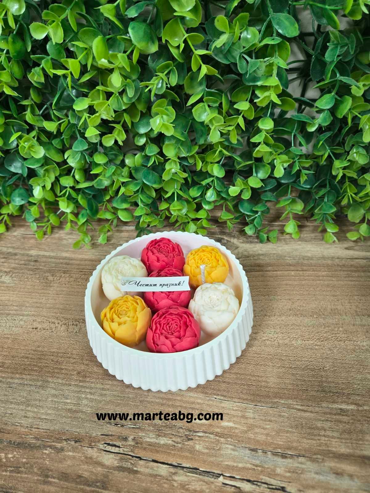 Ръчно изработени соеви свещи с цветя – всяка една подредена и оформена с внимание към всеки детайл.
