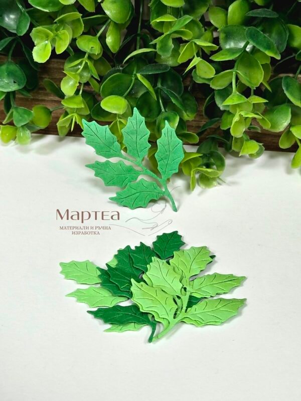 Декоративен картонен елемент във форма на листенца – прецизно изрязан от плътен, безкиселинен картон с гладка повърхност. Подходящ за скрапбукинг, картички, албуми, кутии и тематични декорации; може да се оцветява, лакира или наслагва за изразен 3D ефект. Лекият материал залепва лесно с лепило, двустранна лента или пяна точки и придава чист, професионален завършек на всеки творчески проект