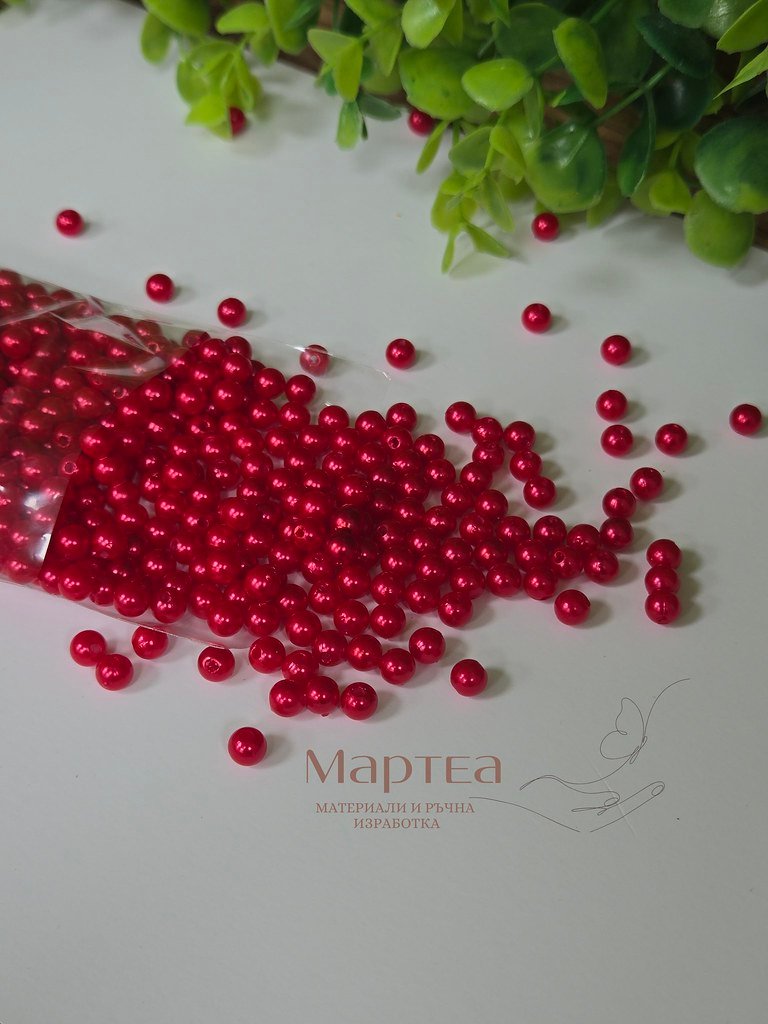 Мънисто във формата на червена перла, с гладка и леко лъскава повърхност. Изработено от здрав материал, то придава жизнерадостен и артистичен акцент на гривни, колиета и обеци. Идеално за цветни и игриви бижута, които озаряват всяка визия.