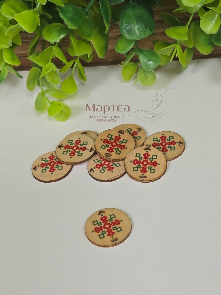 Лазерно рязан дървен елемент – плочка с традиционна българска шевица.