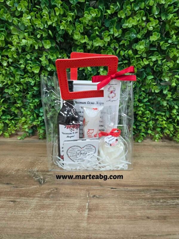 Комплектът е красиво аранжиран и готов за подаряване.