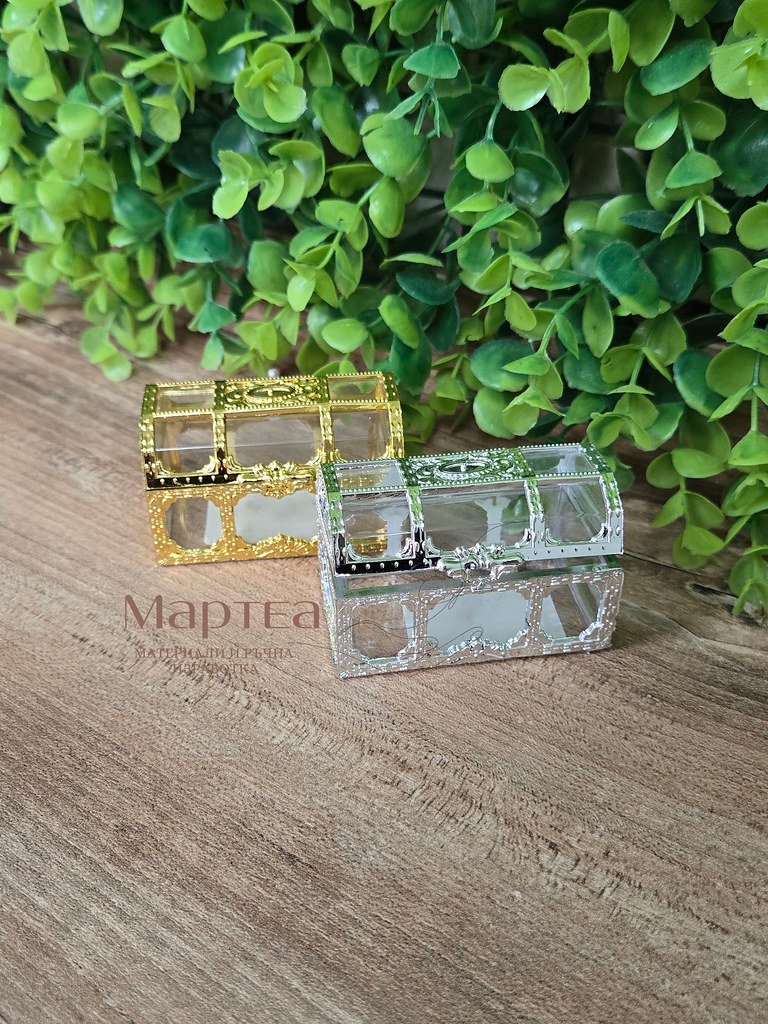 Малко акрилно сандъче в сребърно и златно.